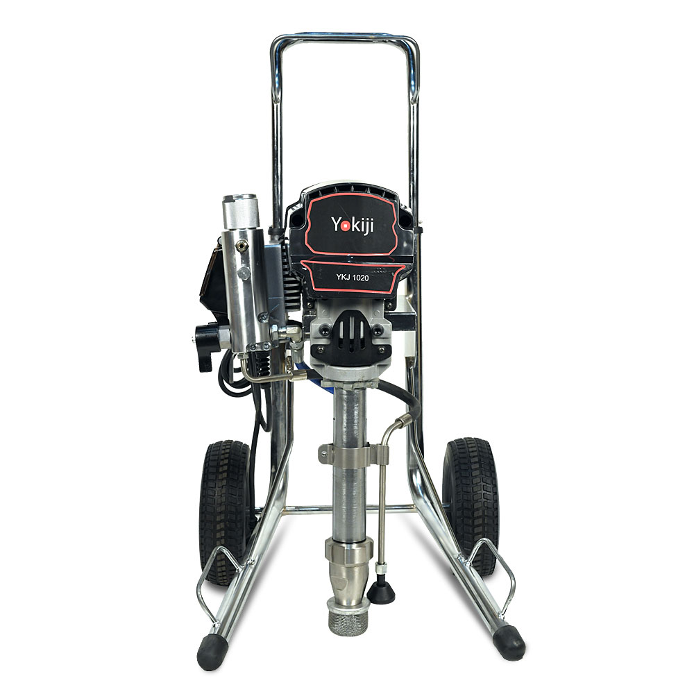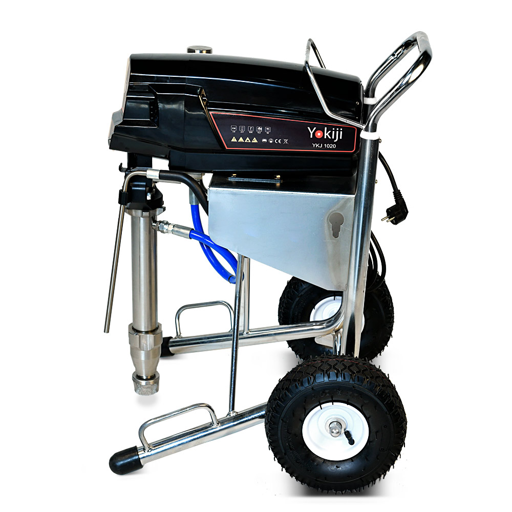 YOKIJI YKJ 1020.1 – окрасочный аппарат для распыления материалов низкой, средней и высокой вязкости; оснащен выходами на 2 малярных поста. Аппарат имеет высокую скоростью подачи материала - производительность до 6,2 л/мин., при этом более компактный размер и меньший вес по сравнению с аналогичными агрегатами. Подключение шланга возможно до 90 метров при работе материалами низкой и средней вязкости на 1 пост и до 45 метров на 2 поста. Мощность 3 кВт и поддерживаемое давление 227 Бар обеспечивают высокое качество покрытия при нанесении интерьерных красок, вязких эмалей, огнезащитных покрытий, грунтов. Работает от розетки 220 В.