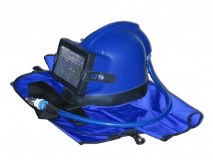 Шлем пескоструйщика состоит из корпуса, внутренней оснастки, смотрового окна, пелерины. Так же все шлема имеют принудительный подвод воздуха на смотровое стекло шлема, т.е. в зону дыхания оператора. Минимальная температура для использования - 15ºС.