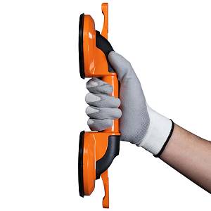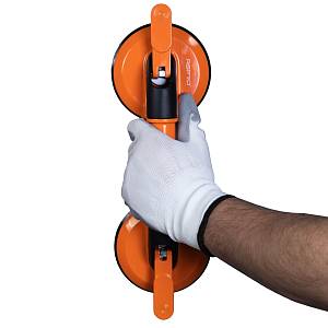 Присоска двойная ASPRO-SC2 предназначена для работы с плиткой с гладкой и текстурированной поверхностью (не подходит для сильно рельефной поверхности). Представляет собой две алюминиевых чаши соединенных прочным алюминиевым держателем с прочными нескользящими резиновыми мембранами внутри - не оставляет никаких следов на плитке. Эта мембрана обеспечивает необходимый вакуум для надежного удержания объектов весом до 130 килограмм. Чаша имеет диаметр 118 миллиметров, а вакуум в ней создается или убирается одним нажатием на рычаг из алюминия.Одной из ключевых особенностей двойной присоски ASPRO-SC2 является ее прочный алюминиевый корпус с фиксирующими ручками, что обеспечивает ее высокую надежность. А мягкие резиновые чаши позволяют присоскам фиксироваться на различных поверхностях, включая глянцевые, шероховатые и матовые.